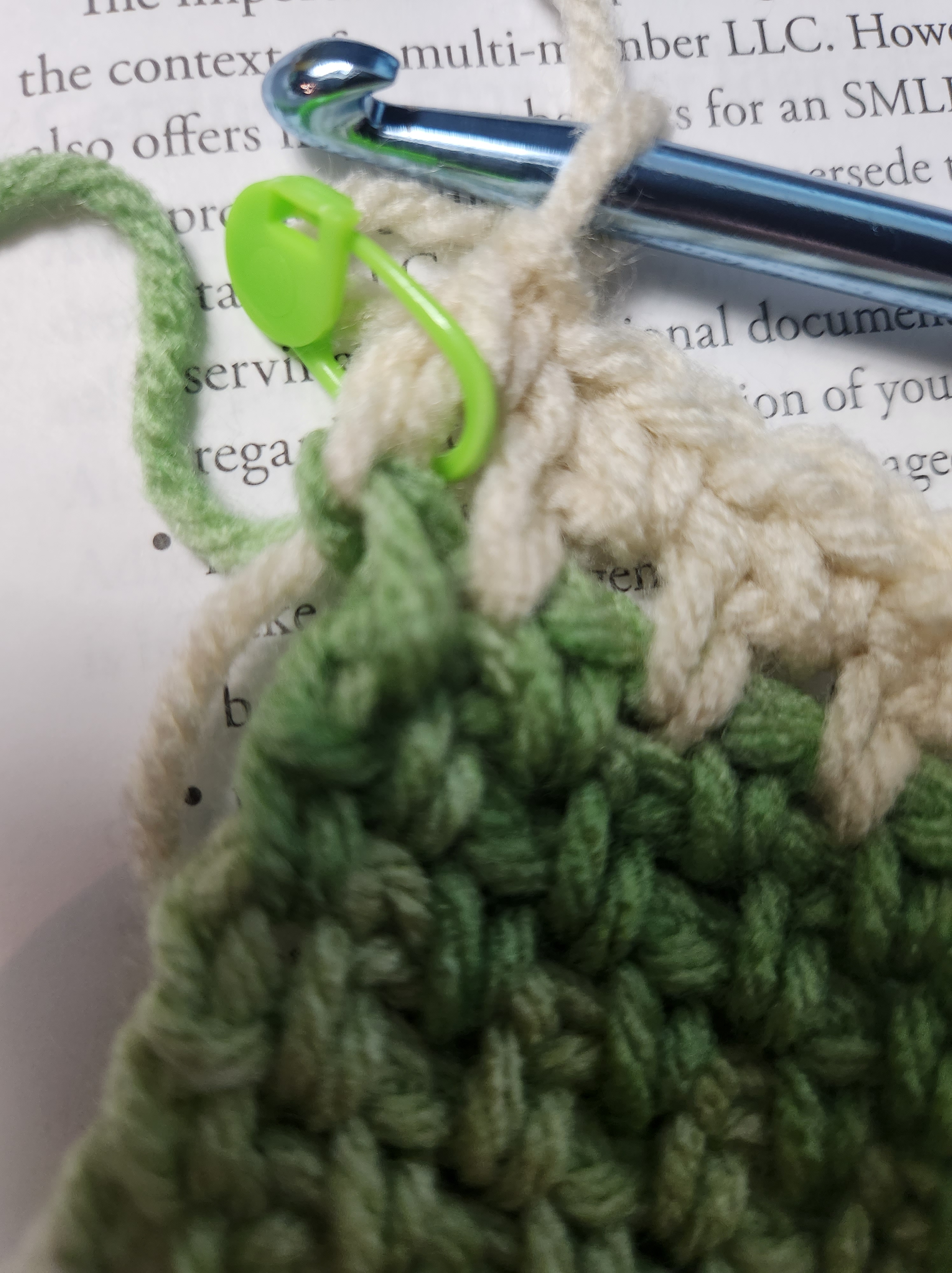 If you’re new to crochet, or even just new to moss stitch, you might find yourself wanting to rip out fairly early. Not gonna lie, moss stitch looks weird until about row 6 or 7 and it can be confusing to know where the stitches go. If you get those stitch markers I linked earlier (trust me, they’re lifesavers), you can put one in each chain 1 space and just move them as you go. It seems tedious, but if you’re concerned about stitch placement, having the visual is a great tool.